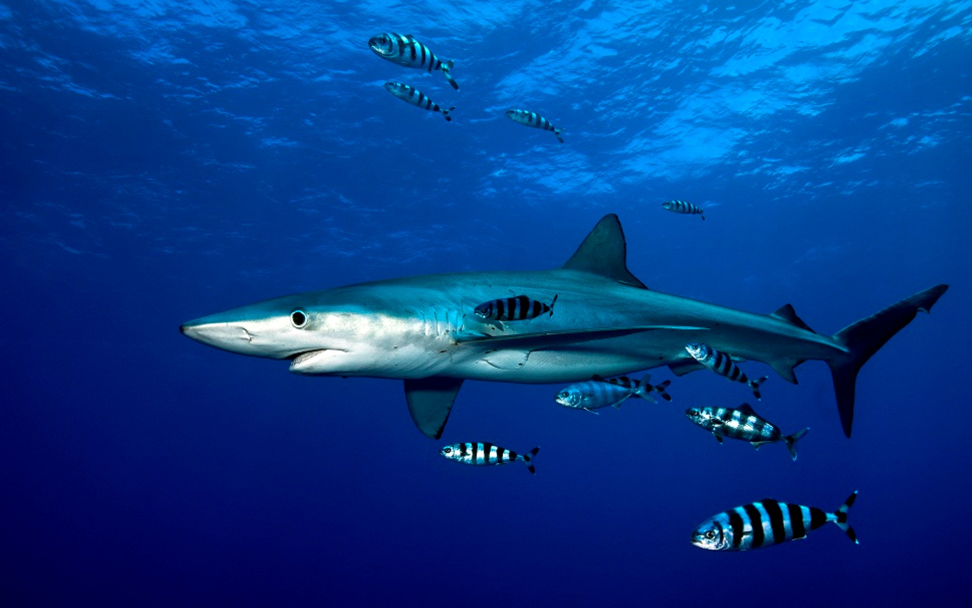 Фото черной акулы с необычными голубыми глазами